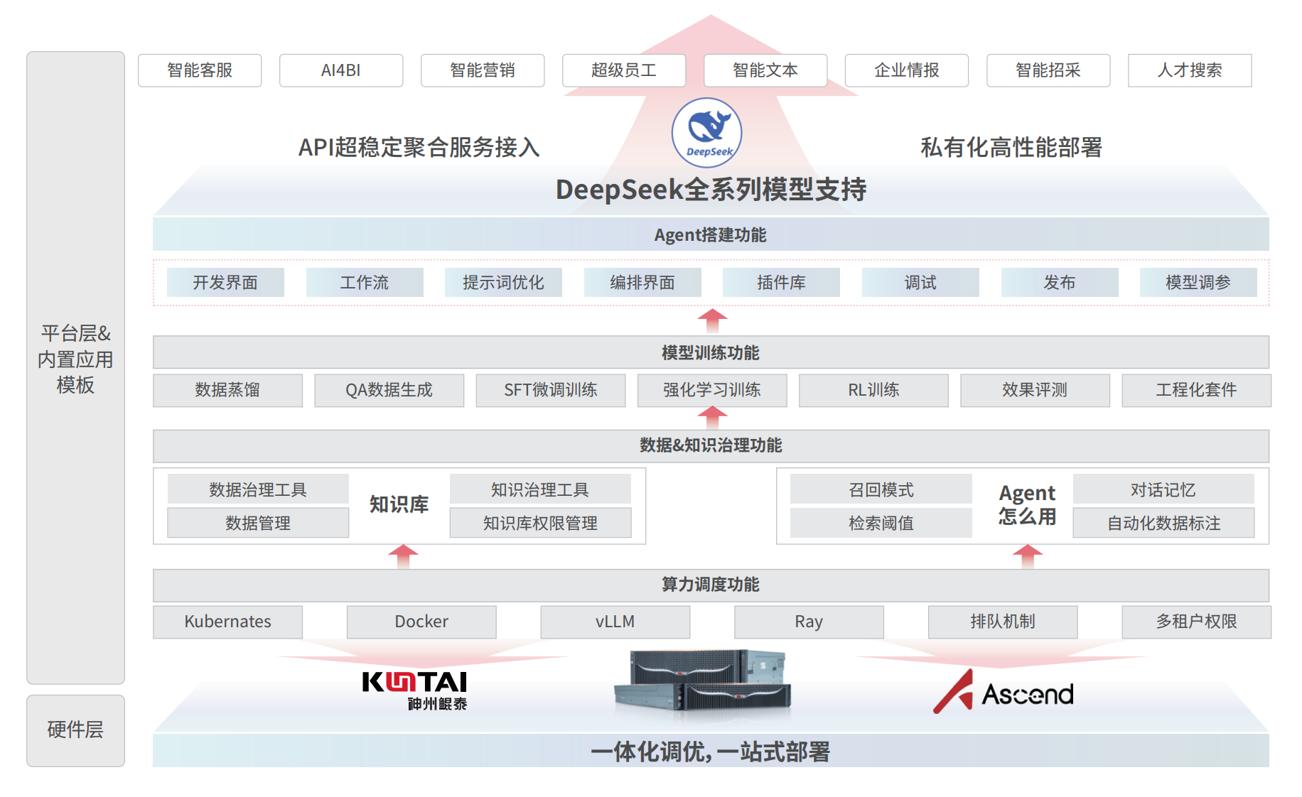 • 私有化全栈部署,兼顾 AI 落地敏捷性与模型、数据的安全性;